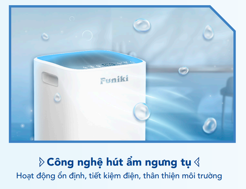 - Công nghệ hút ẩm ngưng tụ với gas R290 hiệu suất cao, hoạt động ổn định, tiết kiệm điện và thân thiện môi trường