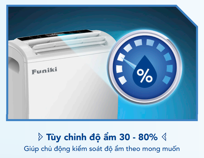 - Tính năng cài đặt độ ẩm 30 – 80% giúp chủ động kiểm soát độ ẩm mong muốn