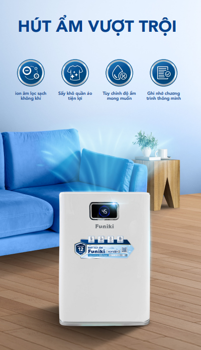 - 03 chế độ hút: Hút ẩm, Hút ẩm liên tục và Sấy khô quần áo, giải pháp cho những ngày mưa ẩm khó chịu